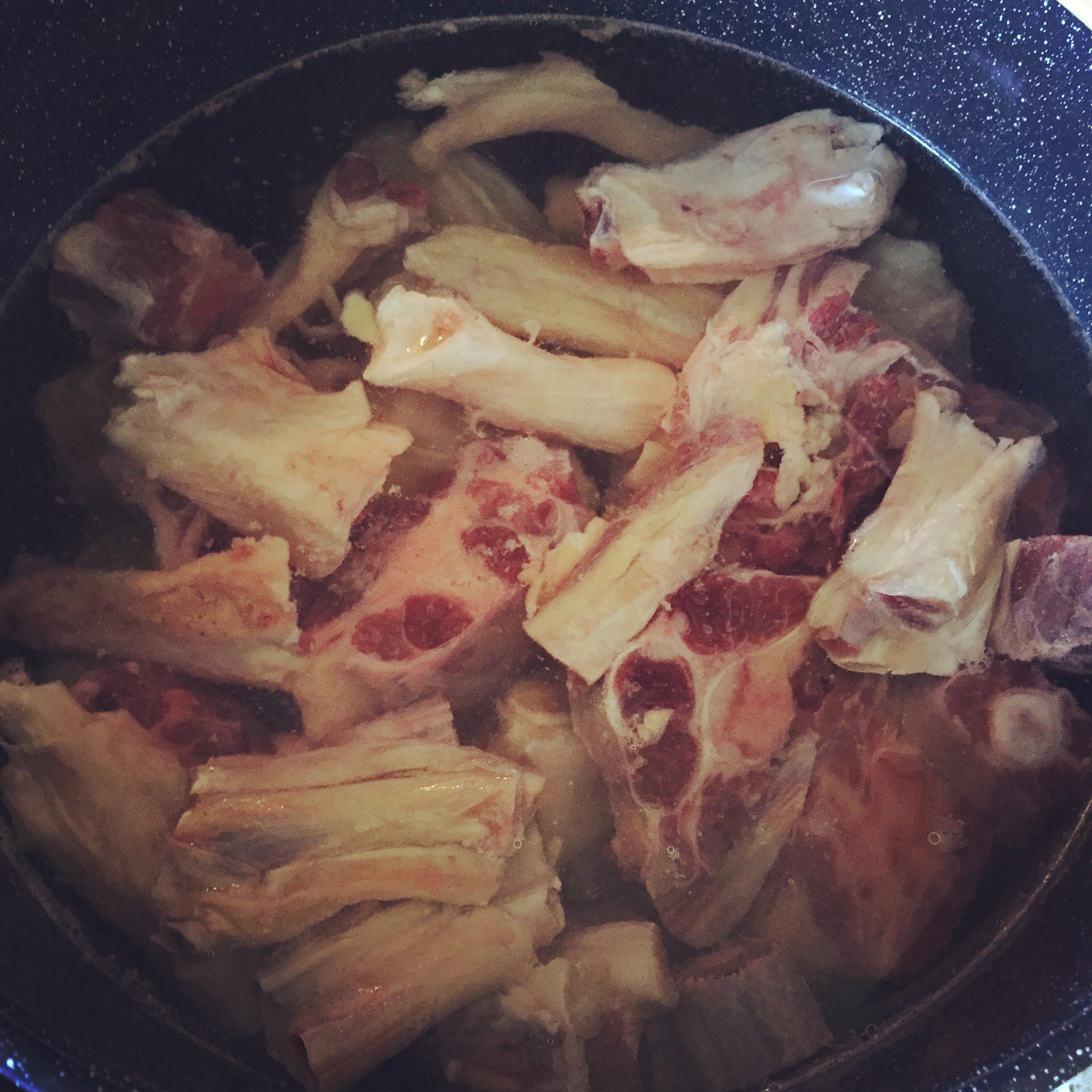 - Add to pot with bones.