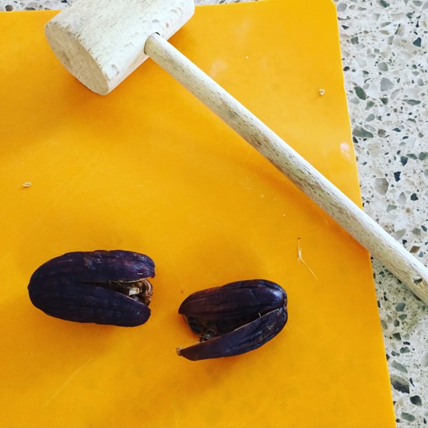 This isn’t super important, but hey, why not go that extra mile when you’re putting in all this work? After about 30 minutes, take the Black Cardamom pods out and squish them to open them up a bit. We used our handy dandy crab mallet for the job.