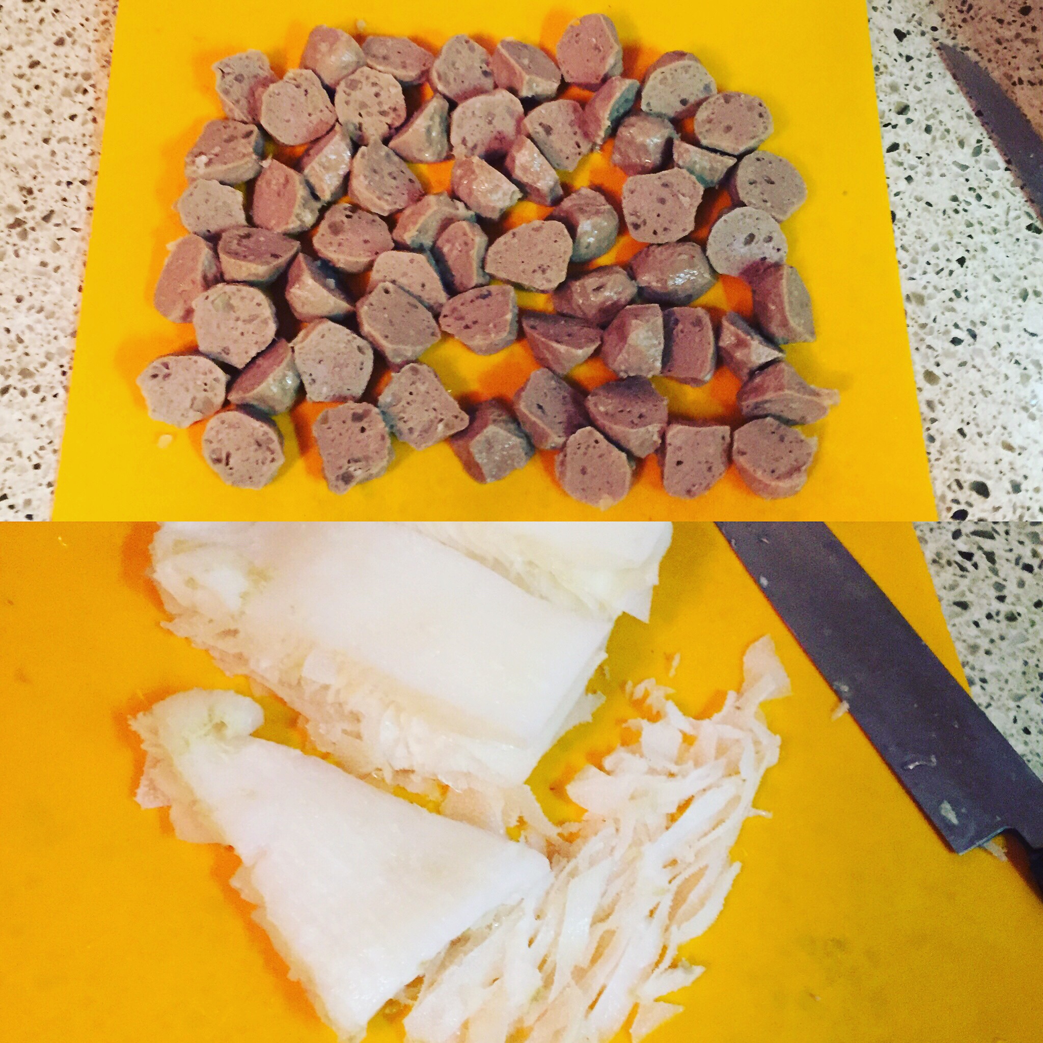 Top: Meatballs with Tendon, halved / Bottom: Tripe, thinly sliced