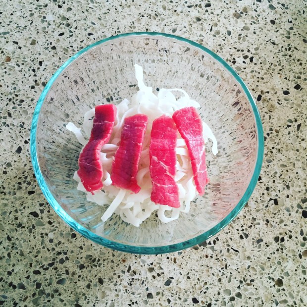 - 1 16 oz. package Banh Pho noodles, prepared according to package directions but slightly undercooked