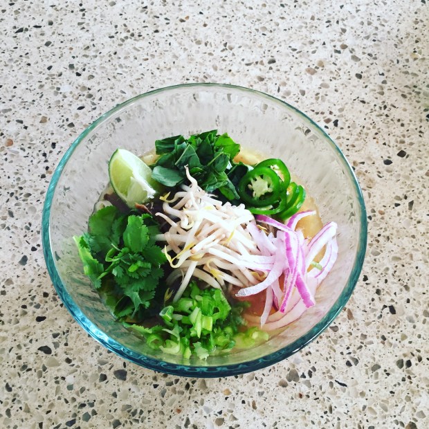 Oh boy! Oh boy! What better way to wrap up an amazing anniversary weekend than making a big pot of soup and watching the season premieres of some of your favorite TV shows?! I think that big pot of soup being a big pot of Pho Bo is the answer.