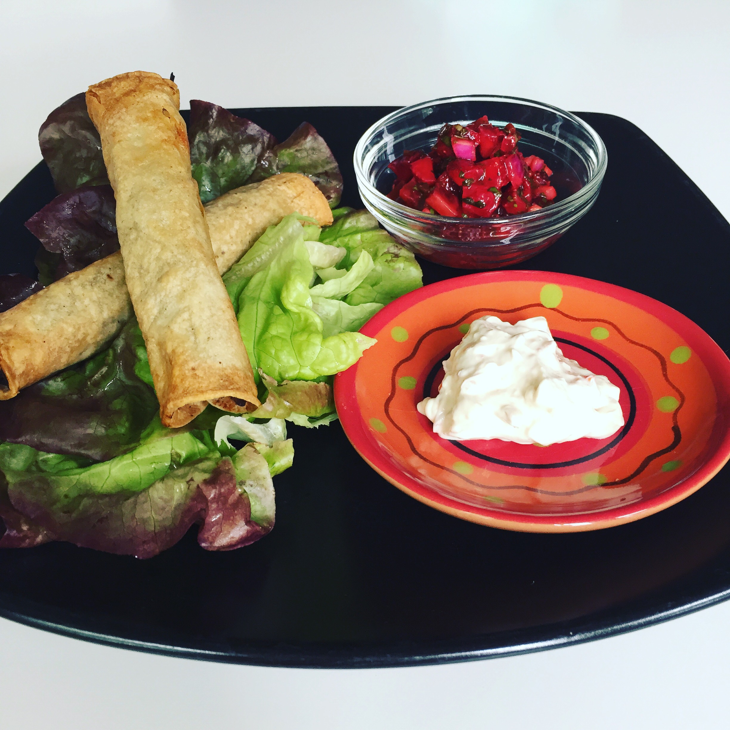Yep, another Hispanic style dish. I just have been DYING to have Strawberry Salsa again and thought I’d give taquitos a shot. I figured the kiddos would like these pretty little handheld pockets for yum.