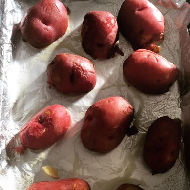 As usual, I followed the basic principles of her recipe but tweaked it to make it my own. First, I don’t have time to always boil potatoes. I’ve found for this recipe, rinsing the potatoes, wrapping them in damp paper towels and microwaving get the potatoes right where I need them to be. It takes 10 minutes! Obviously cook times will vary so just keep an eye on it. I usually start with 5 minutes, test them and then go a couple more minutes and test them again. You could also do as the original post suggests and boil them, too!