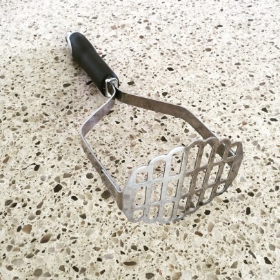 - Transfer tender potatoes to prepared baking sheet and gently smash with Potato Masher (or very carefully with a glass).
