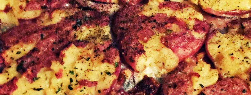 We like to call these “Crack ‘Tatoes” around my house, but I thought that may not be a suitable title for a blog post (hee hee). This recipe is adapted from the Pioneer Woman’s Crash Hot Potatoes recipe. I saw this recipe on Pinterest, tried it out one night and never looked back. They are KILLER! So good. I legitimately have to chase my husband out of the kitchen when they’re done because he would seriously try eat them all up before I have a chance to set the table! There are certain meals that I just HAVE to have these with. Corn Flake Chicken, for example. They are so crispy, full of flavor and you wouldn’t believe that there isn’t an ounce of butter… it’s all Olive Oil! Coincidentally, I also found a homemade ranch seasoning recipe that day so with their powers combined, I made concocted one of our favorite potato recipes ever!