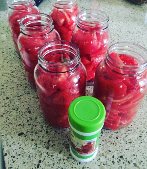 - Tomatoes (15 lbs of tomatoes made 6 Quart mason jars for me)