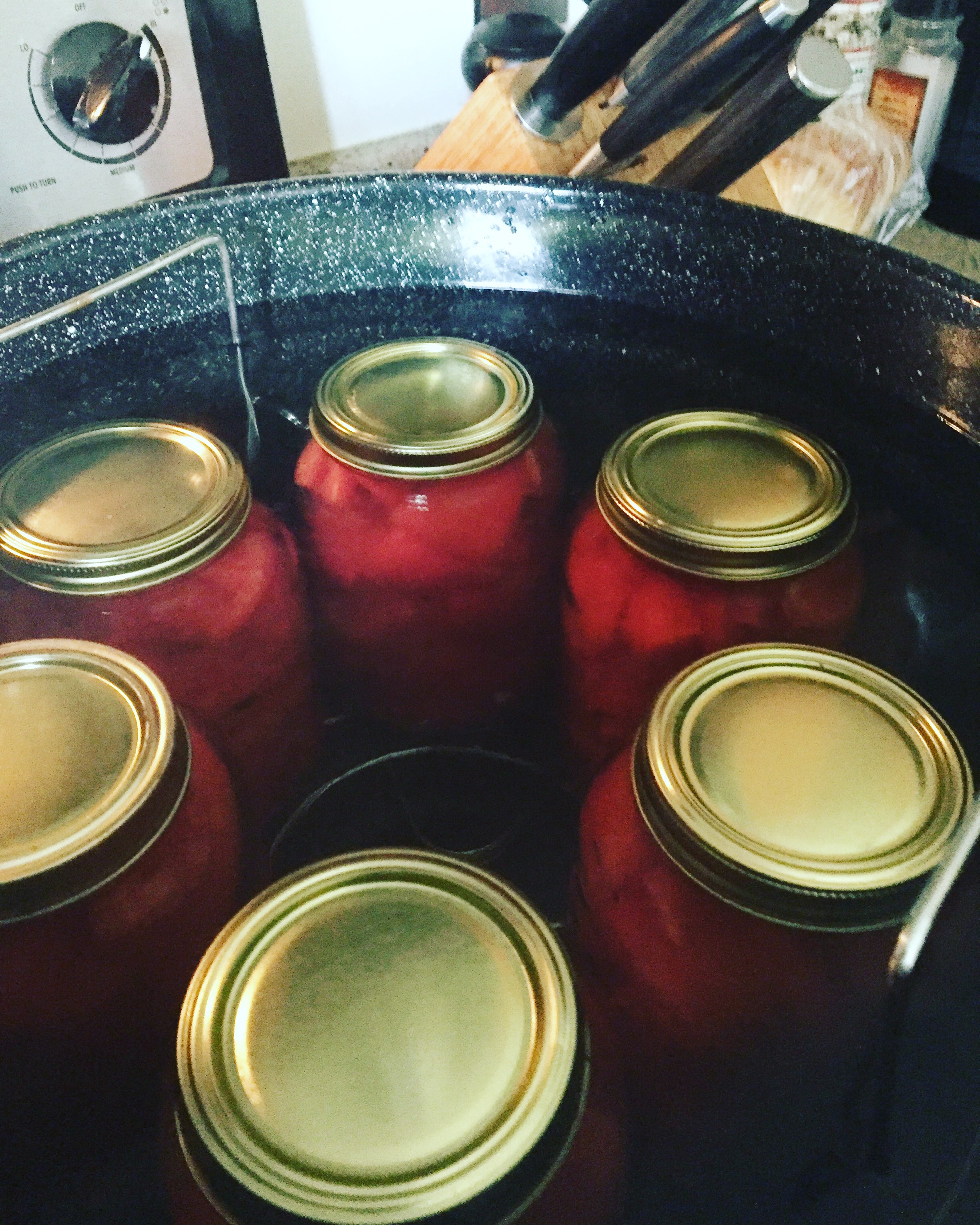 - Fill halfway and start boiling water in Water Bath Canner pot- it takes a while.