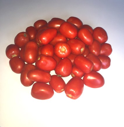 If you’re like me, you love a good tomato in the summer. I typically only have little tomatoes growing in my garden, but my local farmer’s market is always stocked full of my favorites- the Roma! I just love their taste and how meaty they are. Compared to other tomatoes, there are less seeds and more meat which makes them great for sauces and, in my opinion, sandwiches. Here is what 15 lbs of Roma Tomatoes looks like…