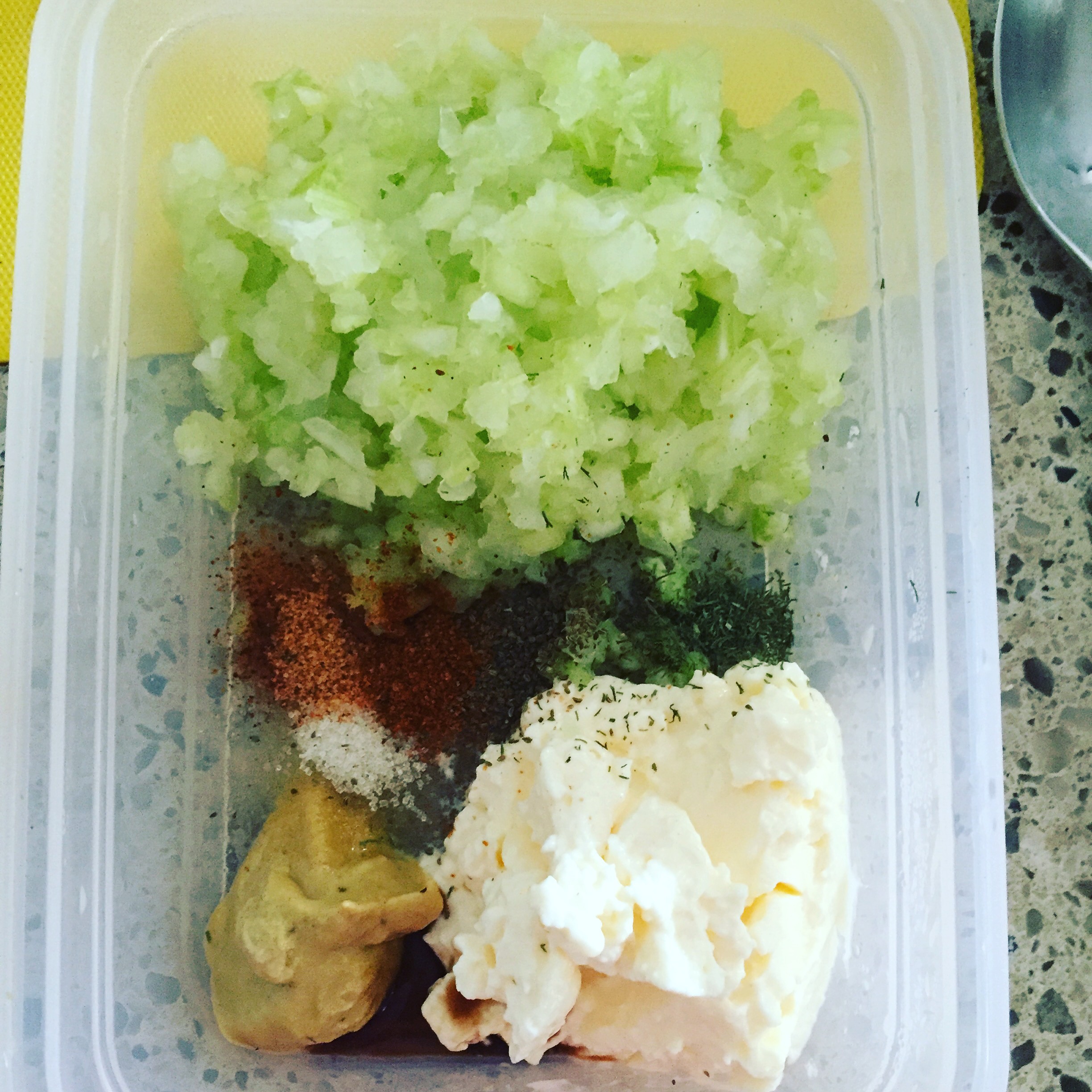 1. Mix together Mayo, Mustard, seasonings, sugar, Worcestershire Sauce and Lemon.